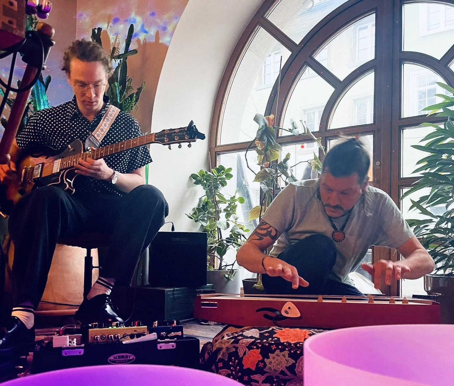 Was als einmaliger Gastauftritt im Rahmen einer Klangmeditation von Sonidos Cósmicos begann, entwickelte sich unerwartet zu einem eigenständigen Projekt. Die beiden Musiker aus dem Herzen Zürichs verbinden Instrumente der Klangtherapie mit Instrumenten/Effekten der Ambient-Musik zu einer meditativen Klanglandschaft, in der Grenzen zwischen Raum, Zeit und Bewusstsein verschwimmen.